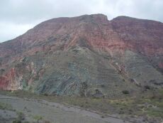 fault contact between two differently-colored sedimentary formations, Andes 2005