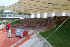 Coseismic surface displacement caused by the 1999-09-21 M7.3 Chi-Chi earthquake. Guangfu Junior High School, 921 Earthquake Museum, Wufeng, Taichung county, central Taiwan.