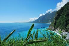 The Pacific Ocean along the east coast of Taiwan, looking south towards the city of Hualien.