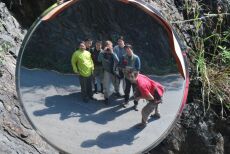 Caution! Objects (in this case geologists) in the mirror may be closer than they appear! Field work along the southern Cross Island Highway near Meishan. From left to right: two unknown geologists from Taipei, Gong-Ruei Ho (NTUT Taipei), unknown geologist, Prof. Wei Lo (NTUT Taipei), Xavier Sengelen.