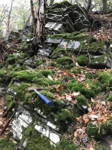 Typischer bemooster Aufschluss von Radiolariten des Unteren Karbon.