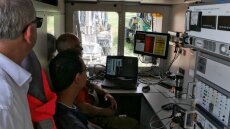 Nach erfolgreichem Logging: Demontage einer Bohrlochsonde auf dem Bohrplatz