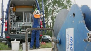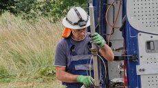 Carlos Lehne, LIAG-Sektion 5 Gesteinsphysik & Bohrlochgeophysik, mit Bohrlochsonde