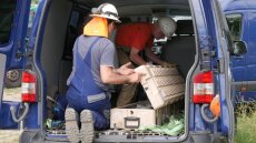 Abtransport einer Kernkiste (Archivprobe) ins Kernlager