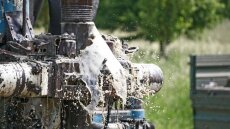 Austretende Bohrspülung beim Öffnen des Bohrgestänges