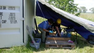 Schattiges Plätzchen für Bohrkernbeschreibung vor Ort
