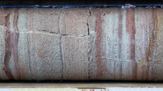 Im tiefen Gesteinsuntergrund sind unsere genutzten Grundwasservorkommen vor allem nur durch Brunnen und Messstellen erschließbar; Das Bild zeigt einen Bohrkern eines Kluft-/Porengrundwasserleiters (Unterer Buntsandstein)