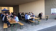 Ein Highlight der Tagung war der Plenumsvortrag einer Koryphäe der Nanomedinzinforschung, Prof. Dr. Kazunori Kataoka von der Universität Tokyo und dem Innovation Center of NanoMedicine in Kawasaki City (Japan), zum Thema "Self-assembled supramolecular nanosystems for smart diagnosis and targeted therapy of intractable diseases". Dem folgten eine Reihe hochkarätiger Präsentationen von Jenaer wie auch von internationalen Wissenschaftlerinnen und Wissenschaftlern. Beim Conference Dinner im Botanischen Garten oder beim traditionellen Thüringer Grillabend mit Bratwurst und Bier kam auch das zwanglose networking nicht zu kurz.