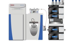 Grafik: Dr. Nico UeberschaarOrbitrap Fusion Massenspektrometer mit einer Dionex Ultimate 3000 nano-HPLC und nano-ESI Ionisierung.