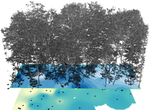 LiDAR point cloud of tree canopy, measured spatial patterns of net precipitation and soil water