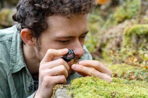 Biologist Till Deilmann from the University of Jena takes a close look at moss plants.