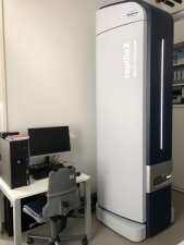 The Ultraflex III is a Matrix-assisted Laser Desorption/Ionization (MALDI) tandem mass spectrometer. Two operating modes of the Time-of-Flight (TOF) analyzer allow the analysis of large molecules in linear mode as well as the detection of small molecules with higher mass resolution using the reflector mode. The instrument is additionally equipped with a LIFT unit which enables the performance of MS/MS experiments.