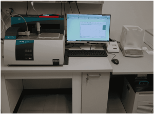 The Netzsch 209 F1 Iris Thermogravimetric Analysis (TGA). This is a technique used to study the thermal stability and composition of materials. It measures the weight changes of a sample as it is subjected to controlled temperature variations in an inert or reactive atmosphere.