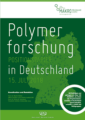 A new white paper Polymer Research in Germany is published by the division of macromolecular chemistry of the German Society of Chemistry (GDCh), which is supported by more than 130 professors as well as industry representatives and a range of scientific divisions. The coordination was performed by Prof. Dr. Ulrich S. Schubert (Friedrich Schiller University Jena) and Prof. Dr. Martin Möller (RWTH Aachen and Leibniz-Institute DWI). The pdf-Version (in German and English) can be found at the website of the division of macromolecular chemistry www.macrochem.org/positionspapierExternal link.