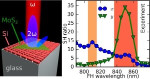 Hybrid dielectric metasurfaces for enhancing second-harmonic generation in chemical vapor deposition grown MoS2 monolayers.