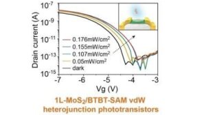 Two-dimensional van der Waals Heterojunction of Organic and Inorganic Monolayers for High Responsivity Phototransistors.