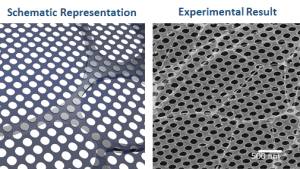 Schematic Representation of a CNM on a TEM grid next to actual experimental results